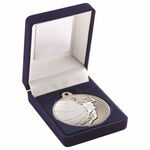 Just Rewards Blue Velvet Box And 50Mm Basketball Medal Trophy - Matt Silver/Silver 3.5" JR15-TY127B