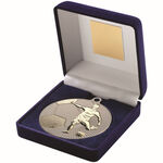 Just Rewards Blue Velvet Box And 70Mm Football Medal Trophy - Matt Silver/Gold 4" JR1-TY102A