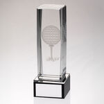 Clear Glass Lasered Golf Column On Black Base With Plate - 6.75". . Most resin and economy glassware can be further customised with a club centre. These can be ordered by clicking on the customisation category. If you are ordering in bulk – don’t forget to add your discount code at the checkout! Add an engraved plate to this item for just £1. Tick for engraving and add the details to the text box.