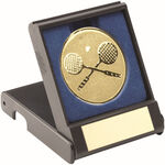 Just Rewards Black Plastic Box With Squash Insert Trophy - Gold 3.5" JR33-TY168A