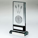 Clear/Black Glass With Lasered Darts Image And Plate (15Mm Thick) - 8.25". If you are ordering in bulk – don’t forget to add your discount code at the checkout! Add an engraved plate to this item for just £1. Tick for engraving and add the details to the text box.
