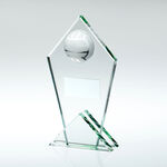 Jade Glass Pointed Plaque With Half Volleyball And Plate - 6.75". This item can be customised with text and a logo. Tick the box for engraving, upload your logo and add your text to the box provided.