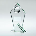 Jade Glass Pointed Plaque With Half Pool Ball And Plate - 5.75". This item can be customised with text and a logo. Tick the box for engraving, upload your logo and add your text to the box provided.