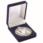Just Rewards Blue Velvet Box And 50Mm Cricket Medal Trophy - Matt Silver/Silver 3.5" JR6-TY107B
