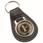 Black Leather Key Fob - (1" Centre) 2.5". Select a custom centre for this item from the "Customisation" section of this website.