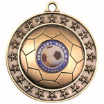Football Medal Large (1" Centre) - Antique Gold 2.75". Don’t forget to order your ribbons and centres! This item can be engraved on the reverse. Tick the box and add the details to the text box provided. You can also customise this item by ordering a medal box and attaching an engraved plate to the box.