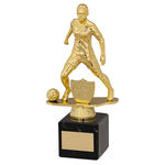 Gold/Blk Plastic Female Football Figure On Blk Marble Trophy (1In Cen) - 10In. New for 2026. Add an engraved plate to this item for just £1. Tick for engraving and add the details to the text box.