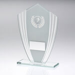 White/Silver Glass Shield Plaque With Rugby Insert & Plate - 6.5In. New for 2026. Add an engraved plate to this item for just £1. Tick for engraving and add the details to the text box.