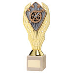 Gold Plastic Holder + Cycling Disc On Cream Marble Trophy (1In Cen) - 10In. New for 2026. Add an engraved plate to this item for just £1. Tick for engraving and add the details to the text box.