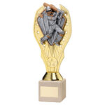Just Rewards Gold Plastic Holder + Cricket Batsman Disc+Cream Marble Trophy (1In Cen) - 9In JR6-TYH125C